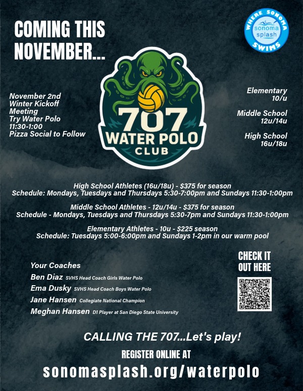 707 Water Polo Club is a non-profit organization committed to teaching the dynamic sport of water polo to young athletes in a positive environment. We strive to make a lasting impact on the lives of our players, both in and out of the pool through focus on skills development, teamwork and sportsmanship. Our athletes receive quality coaching from our experienced and dedicated coaches, Ema Dusky, Meghan Hansen, Ben Diaz and Jane Hansen.